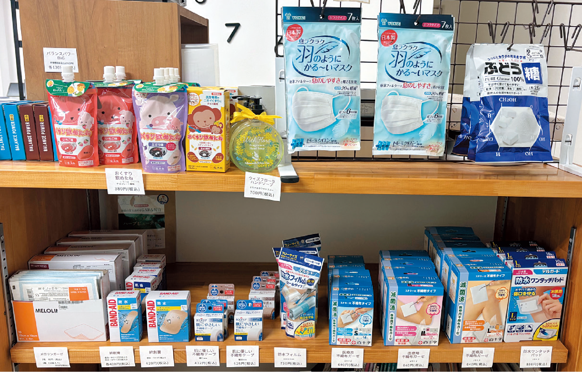 本来,より多くのOTC医薬品を取り揃えることが理想ではあるものの,経営上なかなか難しいというのが実際のところ。とはいえ,在庫を抱えすぎないよう考慮しつつも,夜間や救急外来受診後に必要とされる絆創膏・ガーゼ・フィルムなどの衛生用品,経口補水液や栄養補助食品,一部のOTC医薬品などは,適正な数を確実に揃えています。夜間に「実はガーゼも必要だった」という切実なニーズに即座に応えられることも,地域のセーフティネットとしての実質的な機能につながると考えています。