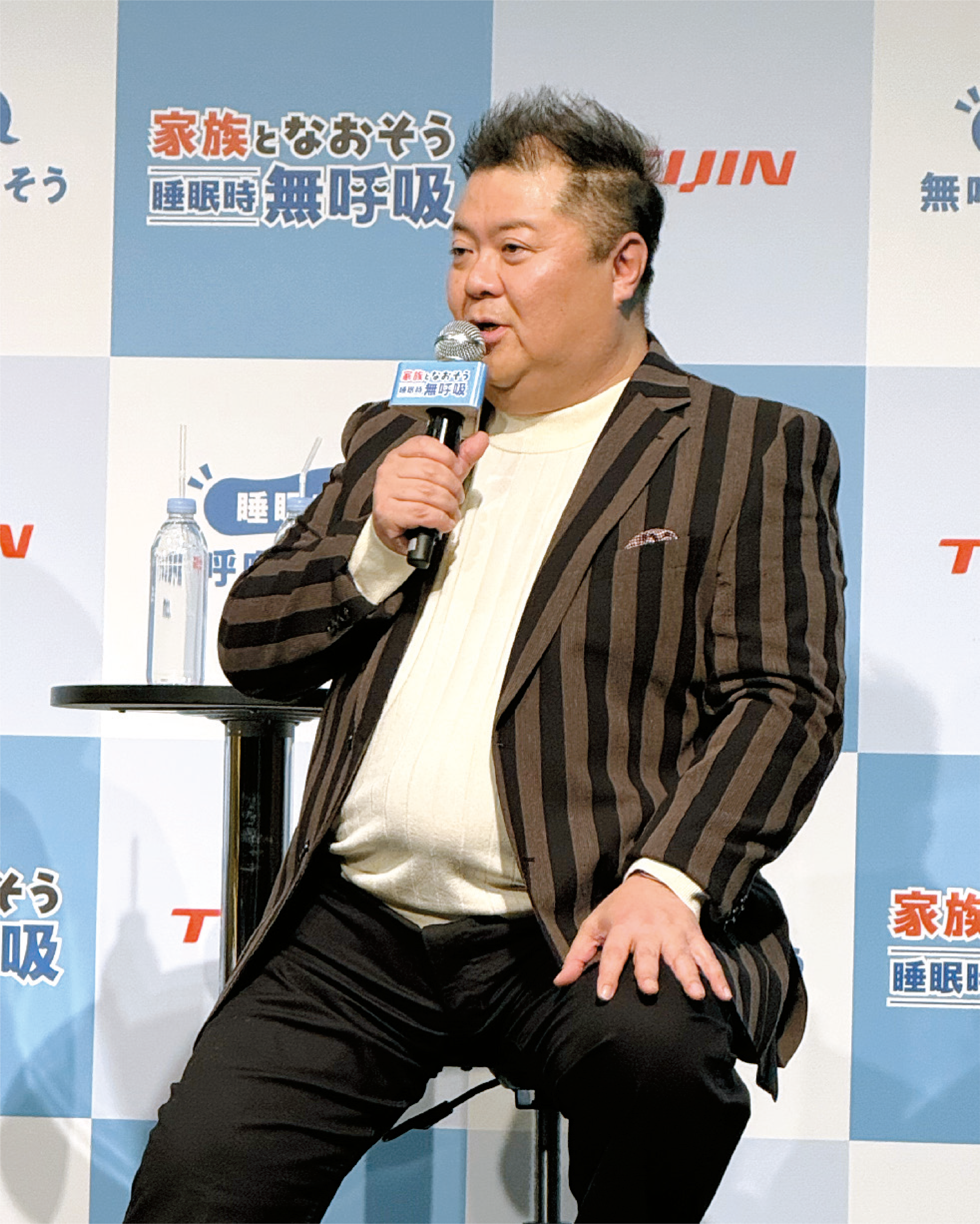 2026年1月19日,帝人ファーマが開催した睡眠時無呼吸症候群(SAS)啓発イベントで発表された「配偶者にいびきが気になる人&家族にいびきを指摘されたことがある人 47都道府県調査」の結果によると,配偶者のいびきや無呼吸を解消してほしいと思っている人は75%にのぼり,そして,その半数の人が配偶者への指摘を躊躇しているという。「気づいているのに動けない」そんな状況が生まれているのかもしれない。実際に検査を受け,これから治療に挑んでいこうという佐々木健介・北斗晶夫妻のほか,SASの治療を現在も続けているブラックマヨネーズの小杉竜一さんを迎えて,トークセッションが開催された。