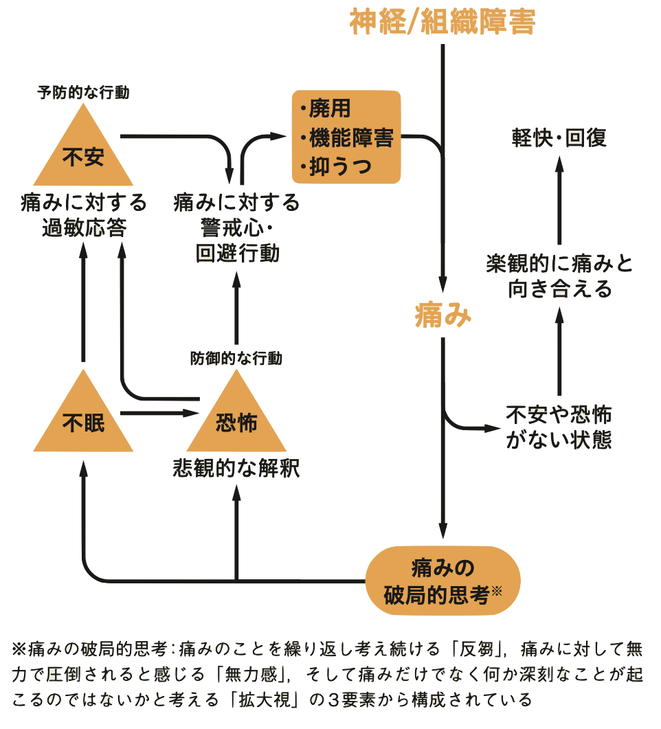 〔「慢性疼痛診療システムの均てん化と痛みセンター診療データベースの活用による医療向上を目指す研究」研究班・監:慢性疼痛診療ガイドライン. 真興交易,p25, 2021/松岡紘史,他:心身医学, 47:95-102, 2007を参考に作成〕